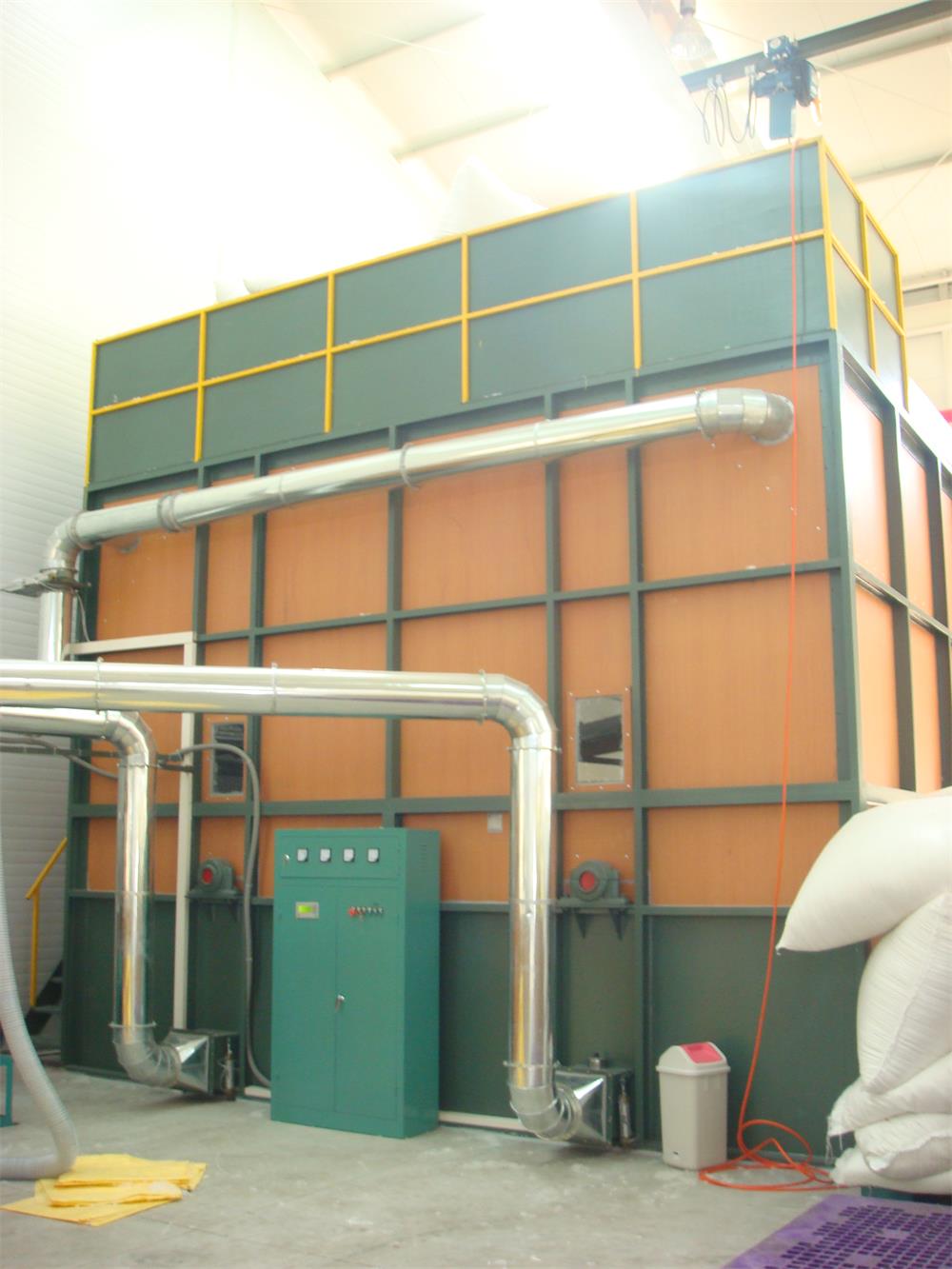 本機利用機械攪拌的原理,對同一規(guī)格不同班次生產(chǎn)的羽絨進行混合拼堆,以使成品品質(zhì)均勻?;?qū)Σ煌?guī)格的羽絨按要求以一定的比例進行混合拼堆,使成品達到所需的要求。拼堆機現(xiàn)有300kg、500kg型和1000kg型三種。根據(jù)操作習(xí)慣,有頂部人工入料和管道真空入料兩種。如有廠房空間限制,在保證機器產(chǎn)量的基礎(chǔ)上可對拼堆機機體尺寸作合理的調(diào)整,以適合車間場地安裝。