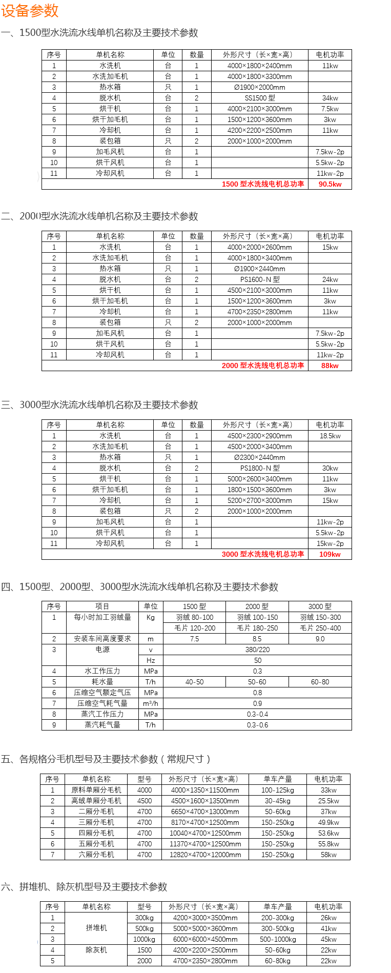 本公司制造的羽絨設(shè)備規(guī)格、品種齊全。包括:?jiǎn)螏?a style="color: #333;" href="http://m.syib.cn/cn/yurongshebei/fenmaoji/">分毛機(jī)、二廂分毛機(jī)、三廂分毛機(jī)、四廂分毛機(jī)、五廂分毛機(jī)、六廂分毛機(jī)除灰機(jī)、水洗機(jī)、 烘干機(jī)、冷卻機(jī),拼堆機(jī)等全套羽絨加工設(shè)備。還有小樣水洗機(jī)、羽絨檢驗(yàn)小樣機(jī)、清潔機(jī)、充絨機(jī)、吸毛車,真空包裝機(jī)及羽毛松包打包機(jī)等輔助配套設(shè)備。